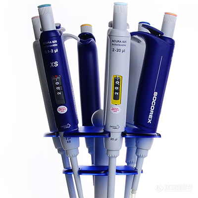 移液枪(图32)是分子生物学试验的常用工具。根据取样的容量不同有多种移液枪供选择,从几微升到几毫升不等。分液器(图33)则适用于重复多次转移较大容量液体,如多次移取40ml液体。它的出现某些特定的程度上提高了移液的效率。
